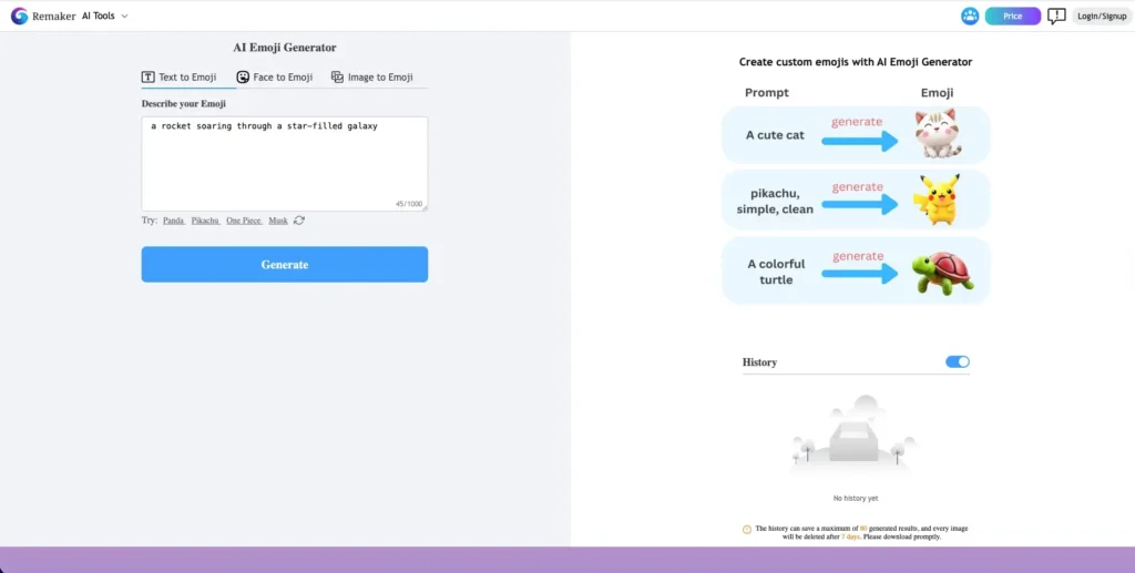 Generated emojis are stored temporarily and deleted after 7 days.